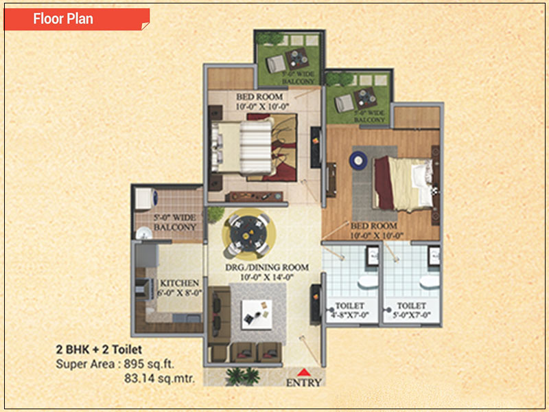 23.26 Lac | 2 BHK | 895 Sq Ft